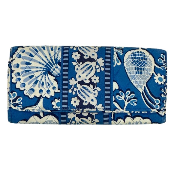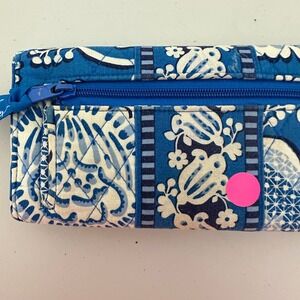 Keywords: Vera Bradley, wallet, blue white, floral pattern, tri fold, zip around, clutch, designer, coin purse, card holder, travel, everyday