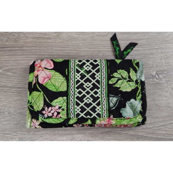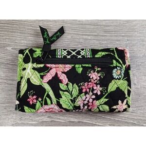 Vera Bradley Wallet Green Black Botanical Tri Fold Clutch Retired Quilted