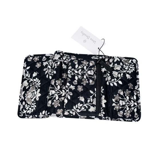 Vera Bradley Wallet Womens One Size Black Gray Floral Quilted Trifold Zip Coin