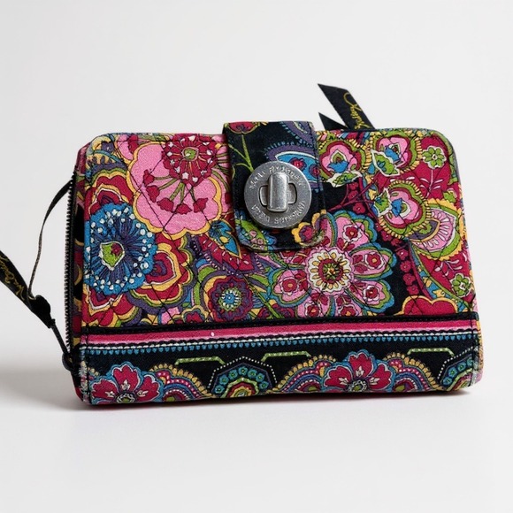 Keywords: Vera Bradley, wallet, organizer, floral, paisley, zip around, turn lock, card holder, coin purse, fashion accessory, colorful, gift idea