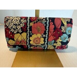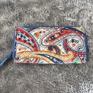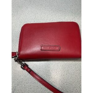 Vera Bradley Wallet Zip Around Small Red Faux Leather Wristlet Organizer