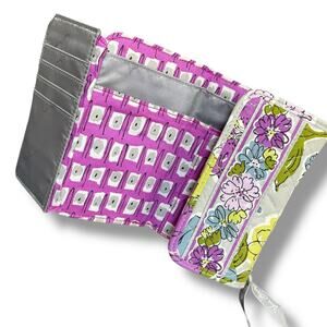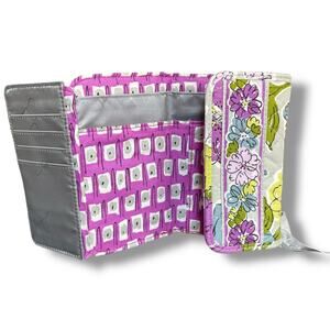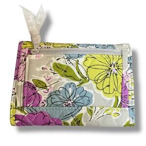 Vera Bradley Watercolor Trifold Wallet Floral Retired Snap Zip Gray Purple