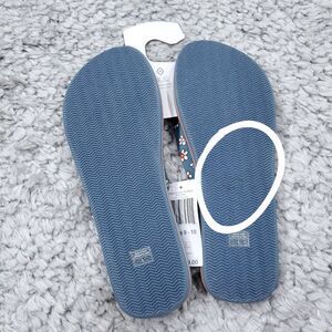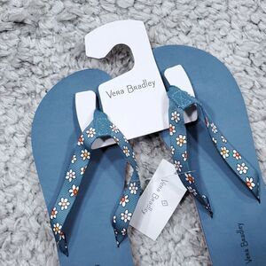 Women's Vera Bradley Webbing Strap Flip Flops in blue "Prairie Paisley Daisy" floral print. New with tags, has a small mark on the bottom of one of the shoes as shown in photo. Women's size large 9-10.