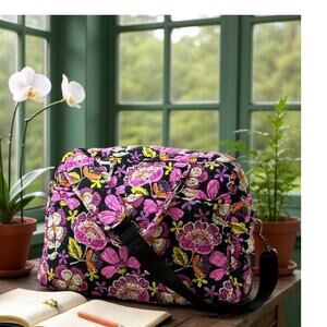 Vera Bradley Weekender Bag Travel Duffel Carry On Floral Pirouette Pink Black