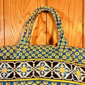 Vera Bradley Weekender Travel Bag Blue Yellow Floral Quilted Duffel Tote 20 Inch