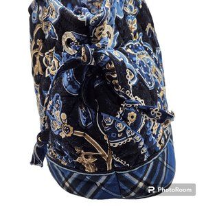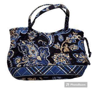 Vera Bradley Windsor Small Two Handled Purse Blue Black Floral Paisley Plaid Retired