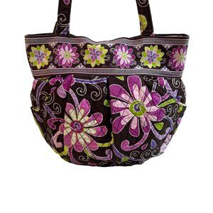 Vera Bradley Women's Black Flowered Multicolor Floral Shoulder Bucket Bag Sz M