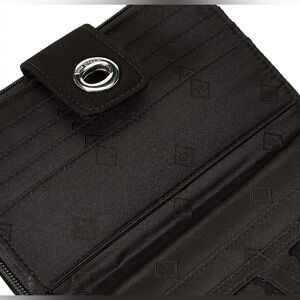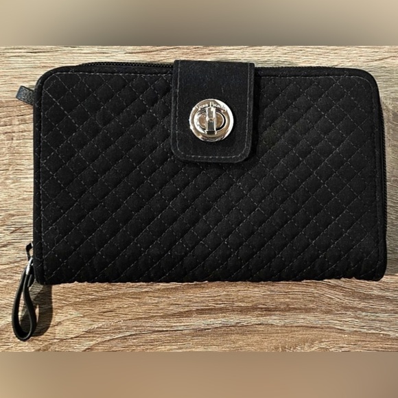 Meet the wallet that does more than protect your credit cards from slipping out, it protects your info from theft. Love a good multi-tasker! In Vera Bradley's sought-after microfiber, the RFID Turnlock Wallet features turnlock and zip closures, two ID windows and plenty of inside slip pockets for all your must-haves.
