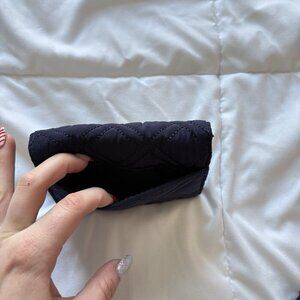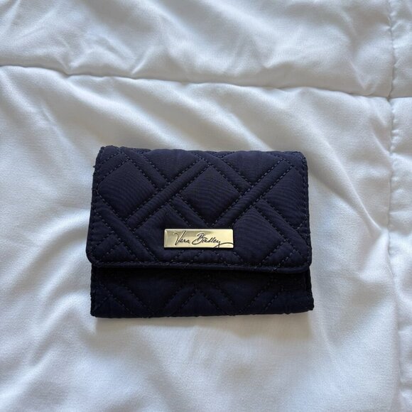 The Vera Bradley Women's Navy Blue Quilted Tri-Fold Wallet is a stylish and functional accessory for women in size small.
