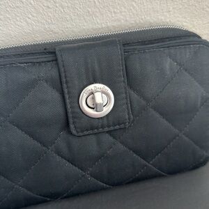 Vera Bradley Women's Performance Twill Turnlock Wallet With RFID, Black. This is the best wallet! This is in great used condition. Measures 8” x 5”.