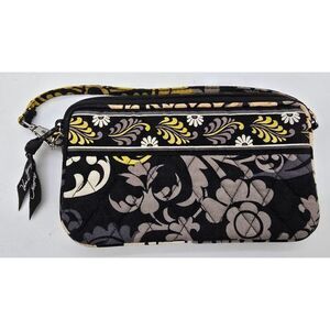 Vera Bradley Wristlet Clutch Purse With Quilted Floral Pattern & Zipper In Black