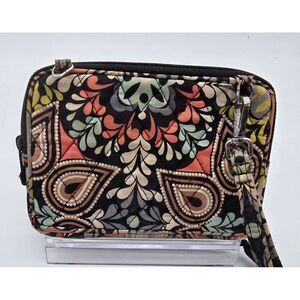 Vera Bradley Wristlet Wallet Paisley Pattern Floral Cotton Black Multicolored