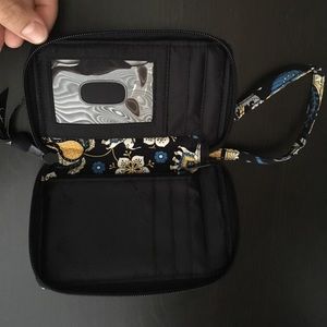 Never Used - Vera Bradley wallet and cell phone holder! Ellie Blue pattern with 6 CC pockets, billfold in back, and cell phone pocket on the outside. Perfect condition
