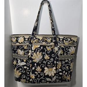Vera Bradley X Large Tote Bag & Snap Card/ID Wallet Yellow Bird Black/Yellow