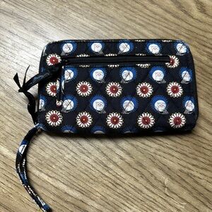 Stylish Vera Bradley wallet. Features a unique pattern with blue and black colors. Perfect for everyday use. Good preowned conditions