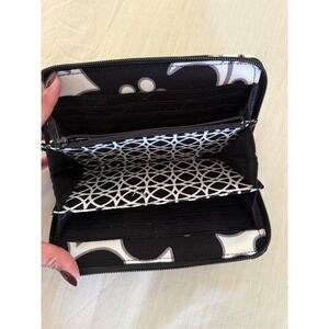 Keywords: Vera Bradley, wallet, zip around, floral, black and white, pattern, coin purse, card holder, travel accessory, gift, designer, fashion