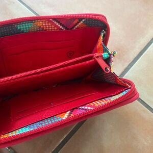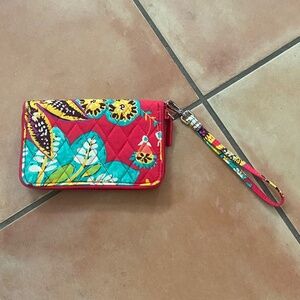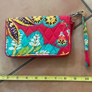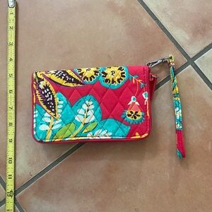 Vera Bradley Zip Around Wallet Rumba Pattern Red Floral Quilted Wristlet