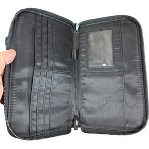 Zip around fabric wallet with matching coin pouch or small wallet. Has some light wash wear but in overall good preowned condition from a smoke free home.
