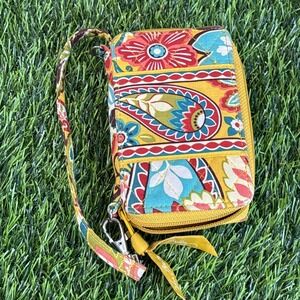 Vera Bradley Zip Around Wristlet Wallet Floral Yellow Multicolor Quilted