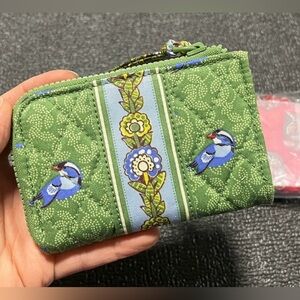Vera Bradley Zip Card Pouch. NWT. Green Birds