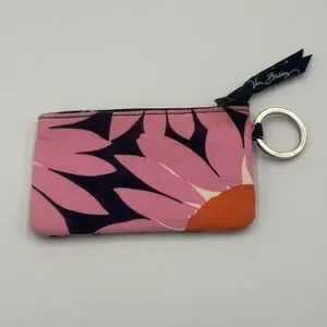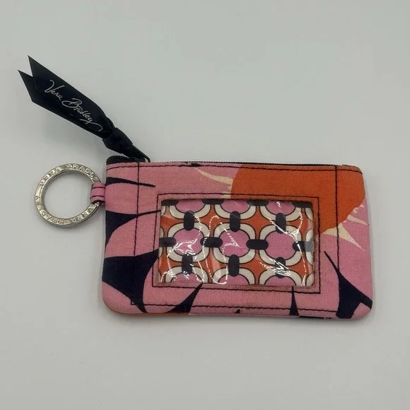 Vera Bradley Zip Coin Purse ID Holder Credit Card Case Pink Flowers Wallet