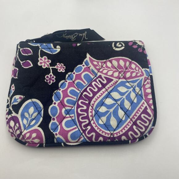Vera Bradley zip coin purse. Black, pink, purple, blue and white. 5”x4”. Preowned good condition. Please see all pictures.