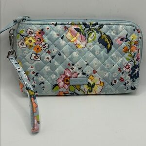 Vera Bradley Zip ID Case Wallet Pouch Navy Paisley Floral Wrist Strap