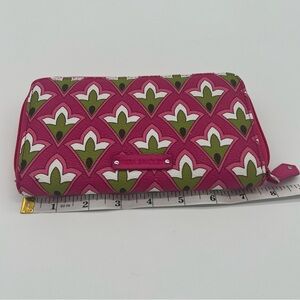 Vera Bradley Zip-Around Wallet – Pink & Green Geometric Pattern – RFID Large