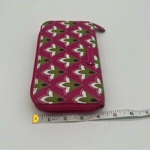 Vera Bradley Zip-Around Wallet – Pink & Green Geometric Pattern – RFID Large