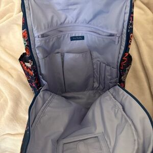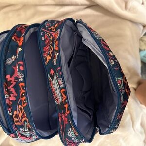 This bag is beautiful. May be used twice extra clean super good for travel has the strap along the back where you can put it over your pull travel luggage definitely love it, but I’ve got too many backpacks so I need to find a new home for this one.