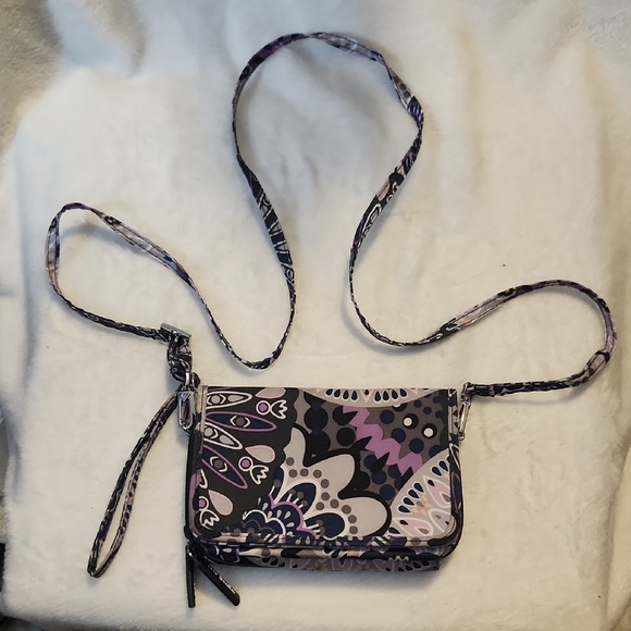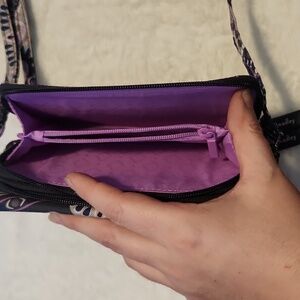 Vera Bradley black and purple Crossbody bag or wristlet with removable strap