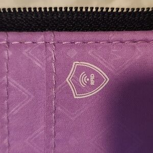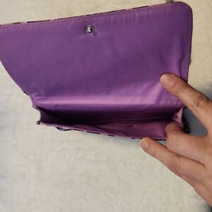 Elevate your style with this chic purple patterned women's bag. Perfect for any occasion. EUC. no rips or wearing. 3 large pockets. RFID protected