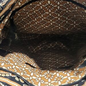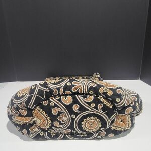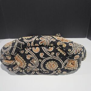 Vera Bradley black, tan, & brown bag. There is one zipped pocket inside. Elevate your style with this fun women's bag featuring a striking paisley pattern. The black and gold design adds a touch of sophistication to any outfit. Perfect for any occasion.