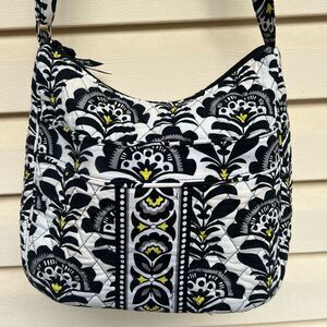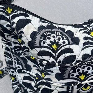Vera Bradley, black&white w/neon yellow petals crossbody purse,adjustable handle