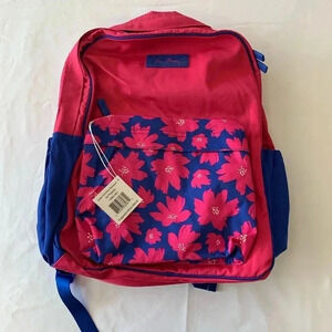 Vera Bradley blue and pink large color block backpack art poppies backpack NWT