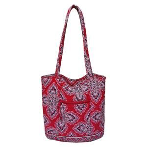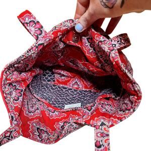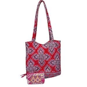 In good condition some wear on straps see pics womens retired vera bradley Frankly Scarlett red demask mandalla print double handle tote shoulder bag bundle with paisly card holder coin pouch keychain
