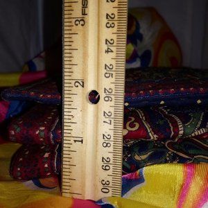 Cute three pouch clutch. Middle section secures with 4" zipper. Velcro closure on flap. Clean and very typically Vera Bradley design. Long cross-body strap or shoulder throw with small slip knot (see pictures). Generous size 7 3/4" x 5". Large enough for the biggest smart phone! USA made 100% COTTON.