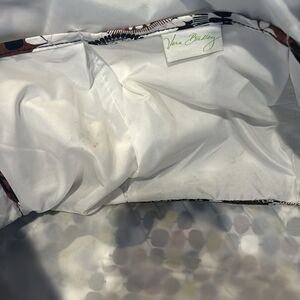Vera Bradley stroll along quilted cotton white, brown, green and black circle pattern diaper bag, small marks on inside pockets as shown in pictures