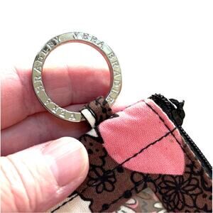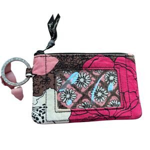 Vera Bradley keychain ID wallet pink floral fabric zipper case slim preppy