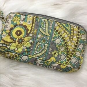 Vera Bradley larger wristlet green gray yellow turquoise brown