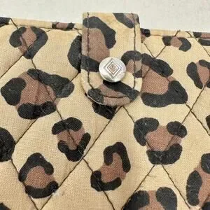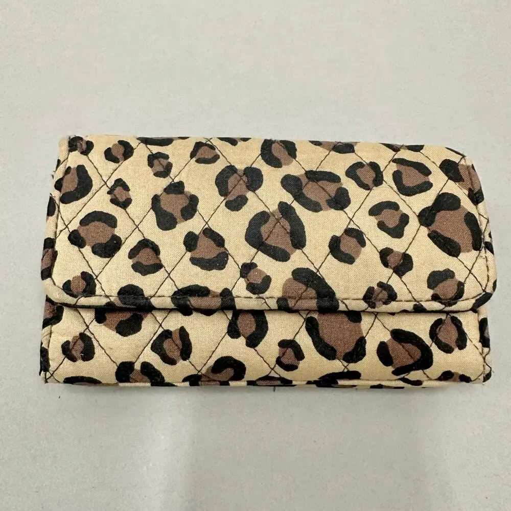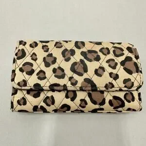 Vera Bradley leopard print quilted cotton RFID trifold wallet snap closure