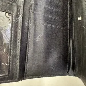 Interior features an ID window, three card slip pockets and four slip pockets
