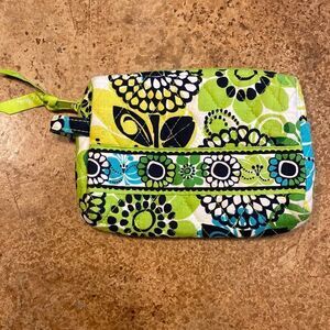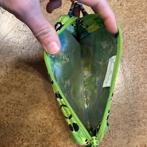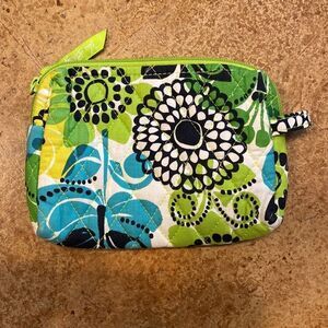 Like new Vera Bradley lime’s up green floral print mini plastic lined makeup bag. Approximately 5 x 6 x 2”, zip top, see pictures for details.