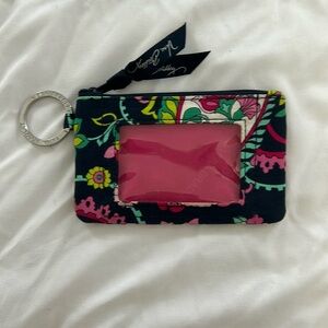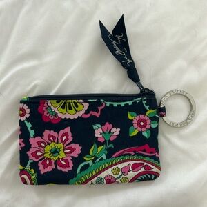 This is a navy blue floral vera Bradley keychain/ID case holder. Has a navy blue vera Bradley ribbon to help open and shut the case.