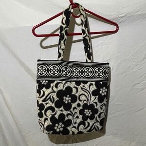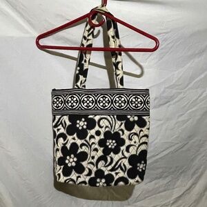 Retired day and night patterned tote by Vera Bradley. Has 3 inside pockets. Has 1 magnetic snap. Has small stain on the bottom that’s not noticeable in person.