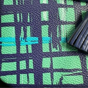 Vera Bradley tassel wristlet, Navy/Teal Art Plaid, two pockets, card holder