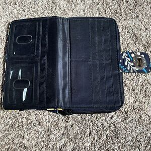 Vera Bradley, turn lock wallet, Ellie retired design, blue and yellow