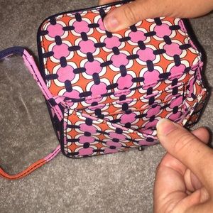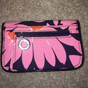 Vera Bradley button close wallet with removable ID holder and credit card holders. Has zipper pocket on back. Very gently used, very easily cleaned. Machine washable.