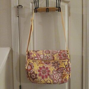 Vera Bradley yellow and pink boho design quilted messenger bag diaper bag