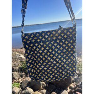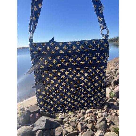 Vera Bradley yellow blue floral Michigan Wolverines triple zip crossbody bag